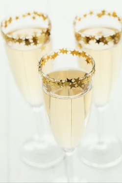 Outro elemento essencial para a decoração da mesa de passagem de ano são os copos. Copos de água, de vinho branco, de vinho tinto e, claro, de espumante. Poderá dar um toque diferente aos mesmos decorando-os, por exemplo, com verniz das unhas (que pode retirar facilmente depois) ou fazendo um aplique em cartolina ou EVA para a base da taça.